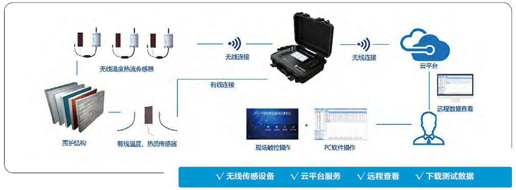 無線傳感器(選配):6個溫度熱流無線模塊 、6個溫度無線模塊