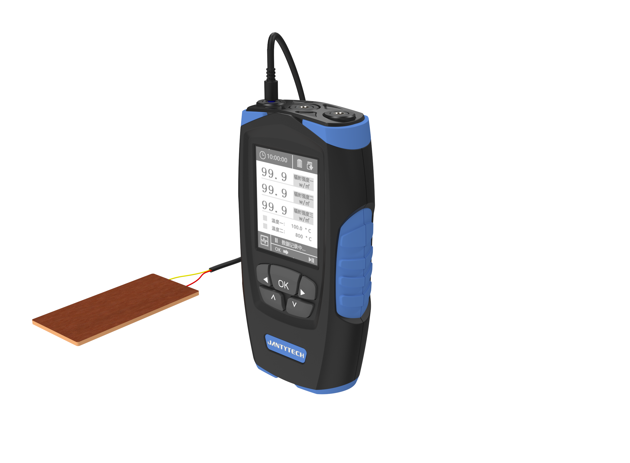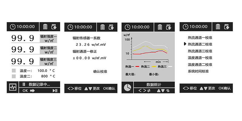 JT2025熱通量測試儀可測試兩路溫度(K型熱電偶)、三路熱流、輻射熱、太陽輻射等參數(shù),是建通科技系列專業(yè)測試儀器之一。其中JT2025R用于測試熱流和溫度,可接入任何第三方的相關(guān)熱流傳感器;JT2025F用于測試輻射熱或太陽輻射和溫度。本儀器內(nèi)置16GB存儲卡,可存儲海量數(shù)據(jù),低功耗設(shè)計(jì)實(shí)現(xiàn)了長續(xù)航,屏幕直觀顯示測量數(shù)據(jù)及基本統(tǒng)計(jì)結(jié)果,是現(xiàn)場測試、實(shí)驗(yàn)室測試的專業(yè)設(shè)備。