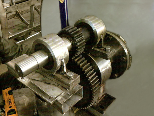 驅(qū)動系統(tǒng)由減速電機、傳動軸、中心軸承等組成。 |