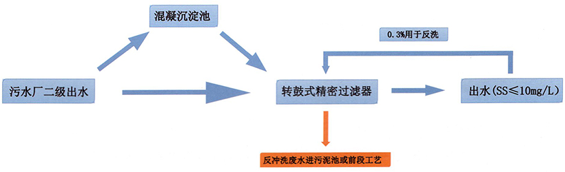 從表格數(shù)據(jù)可以看到,一級B提高到一級A,SS的高允許排放濃度從20mg/L降低到了10mg/L。這是轉(zhuǎn)鼓式精密過濾器所應對的主要領域。